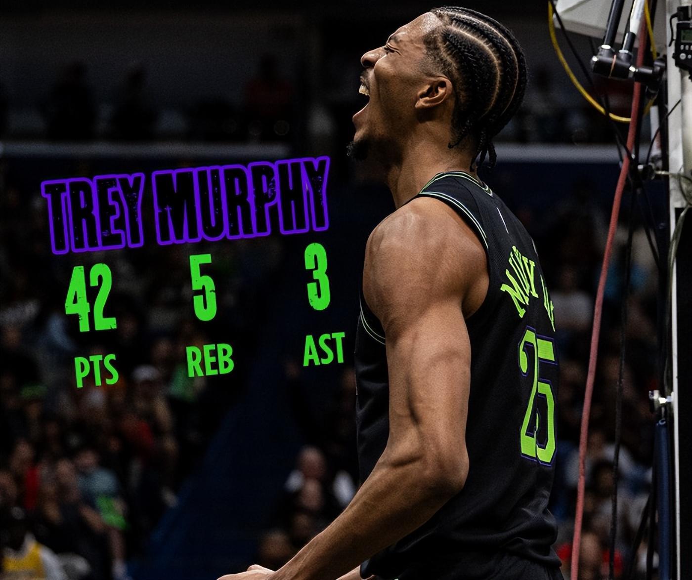 在这个消息出炉后,墨菲在对阵湖人的比赛中就大放异彩,全场比赛39分钟,26中14,三分17中6,罚球9中8,拿到42分5篮板3助攻,命中率53.8%,三分命中率35.3%,他的个人表现比东契奇还要出色。